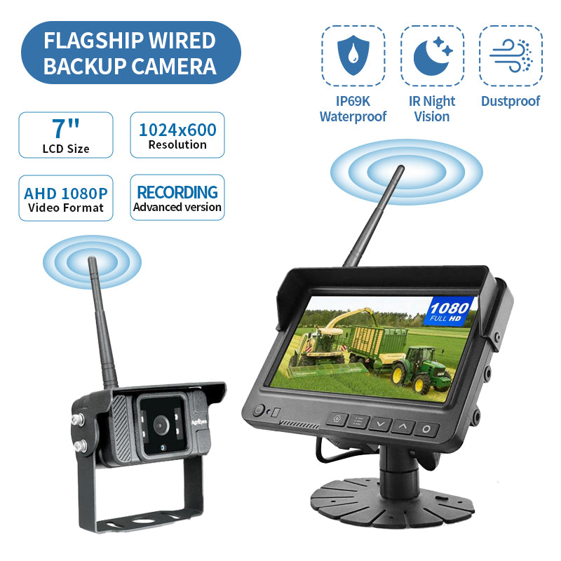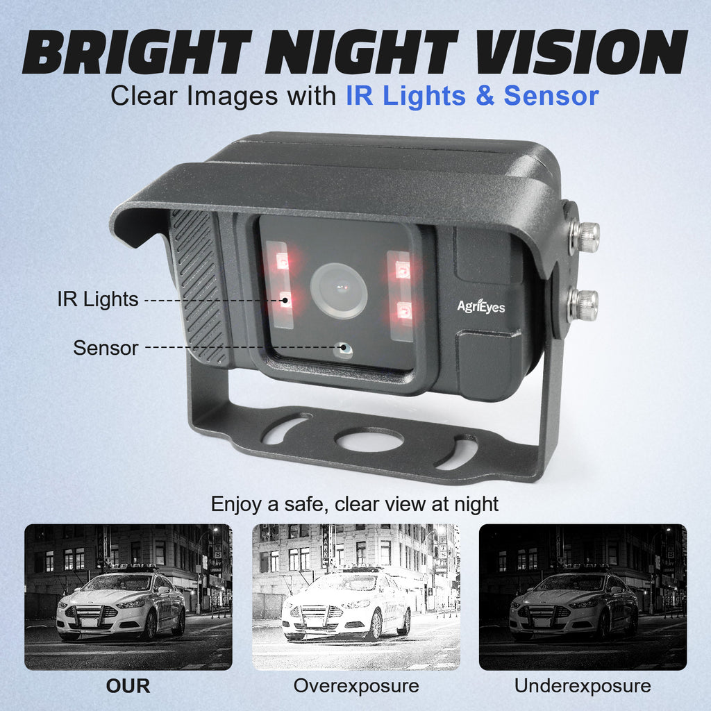 AgriEyes Flagship Wired Backup Camera(include 1 Camera) – 4 Inputs, Night Vision, IP69K, Audio, Split-Screen & More